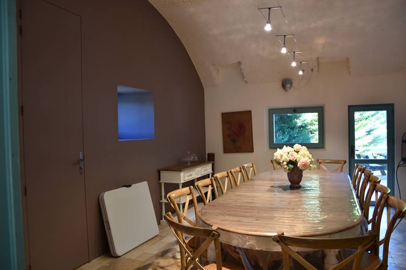 Située dans une copropriété de 5 lots, le lot 3 Nahema, se situe en rez-de-chaussée de la bâtisse principale. Beaucoup de cachet et de beaux volumes. Le hall distribue une spacieuse cuisine avec très belle hauteur sous plafond vouté. Une grande salle à mange s’ouvre sur la partie jardin. Le salon bénéficie d’un poêle à bois. L’on trouve 3 chambres. Une petite chambre. L’une avec salle de bain attenante. La plus grande des chambres bénéficie d’une salle d’eau et d’un toilette indépendant. Le jardin profite d’une surface piscinable de 573m².