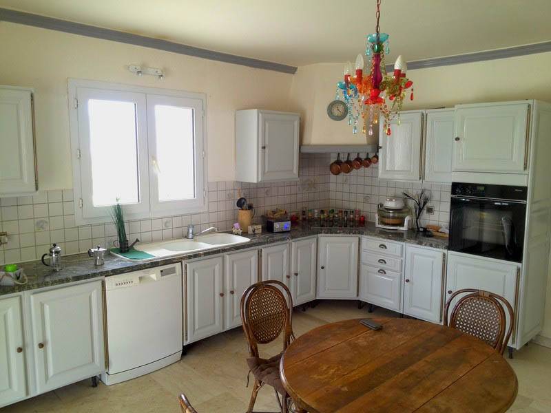 Sh 170m², de plain pied: entrée, cuisine équipée, salon/sàm avec cheminée, 3 chambres, 1 bureau, SdB, Sd'eau, WC. Garage, buanderie, cave, 4 box (voitures). DPE: C