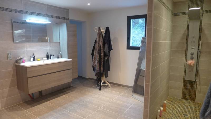 De plain-pied, elle comprend une suite parentale avec salle d'eau, un double lavabo et dressing. Toilette indépendant. Une buanderie s'ouvrant sur un garage de 60 m² pouvant accueillir 2 voitures. un Hall d'entrée pouvant faire office de bureau ou de chambre comprenant une salle d'eau et wc.