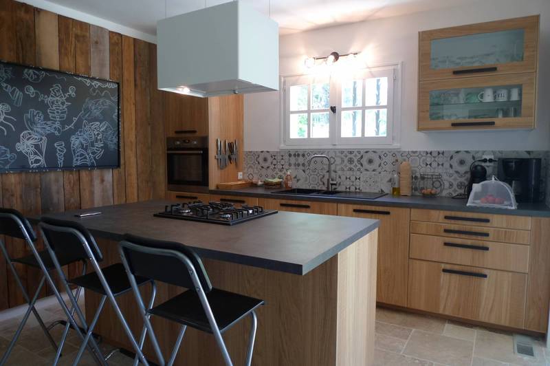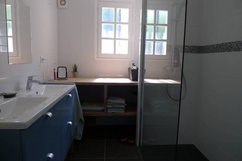 D'une surface habitable de 170m², elle s'organise sur 2 niveaux: En rez de jardin, on entre dans un grand hall d’entrée ouvert sur une cuisine contemporaine entièrement équipée et une grande pièce de vie lumineuse donnant sur une terrasse couverte. Les sols sont recouverts de Travertin. L’ensemble est très confortable et chaleureux. Une chambre avec terrasse privative et salle d’eau avec dressing attenant. A l’étage, une salle de bains et 2 chambres ouvertes sur une terrasse solarium.