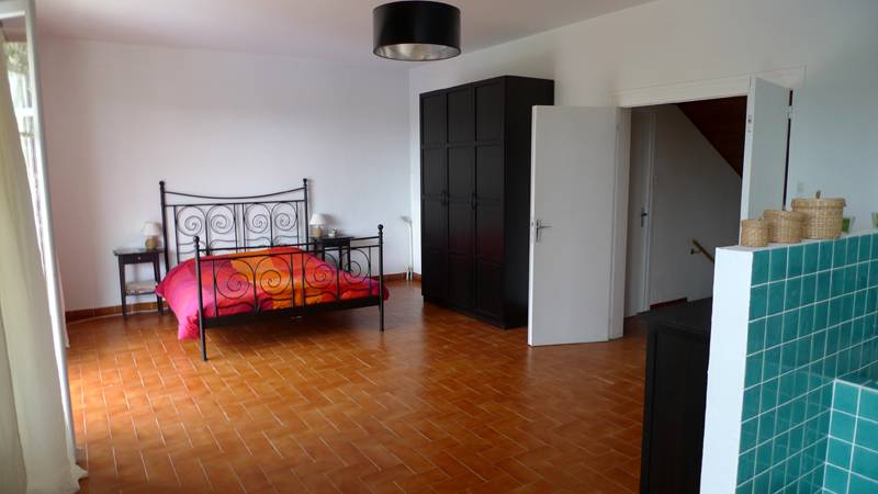 Indépendante, une maison d'amis de plain-pied de 80m² avec une cuisine équipée, un salon / salle à manger, 1 chambre, une salle d'eau, un WC ainsi qu'une terrasse.