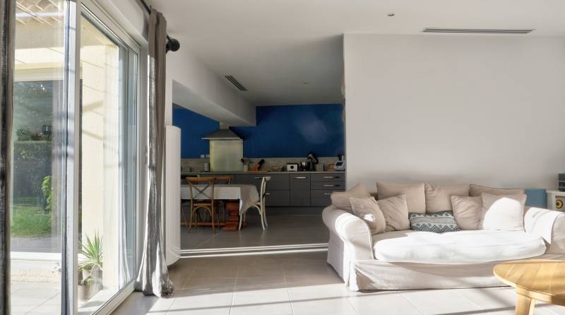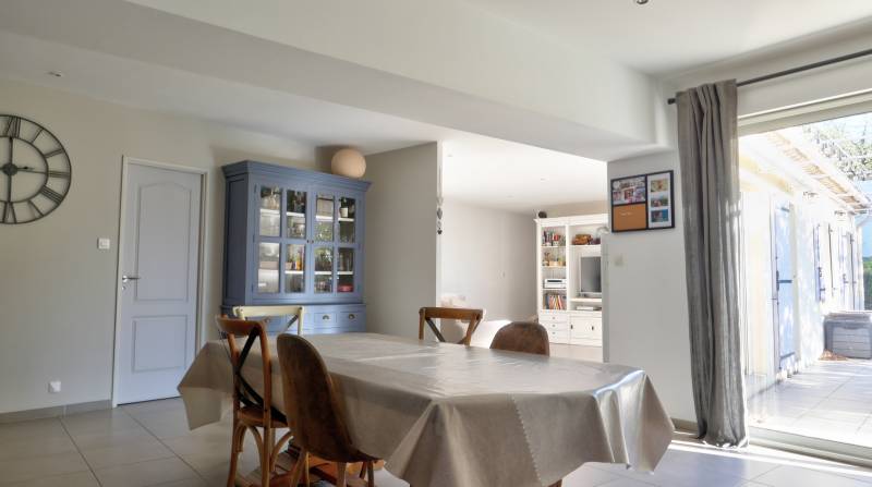 hristine et son mari ont eu un véritable "coup de coeur" pour la maison et nous voilà en Juillet à la signature de la vente. Nous leur souhaitons une retraite paisible et heureuse à Roussas. Dans un quartier résidentiel très calme du village de Roussas, villa de 118m² de plain-pied, construite en 2010. Parfaitement entretenue et améliorée. belle pièce de vie avec cuisine équipée, arrière cuisine, un salon, 3 chambres avec placard pour chacune, salle d'eau et WC. Pratiquement toutes les pièces ont un accès direct sur la terrasse et jardin. Beaucoup de lumière, maison très agréable à vivre!