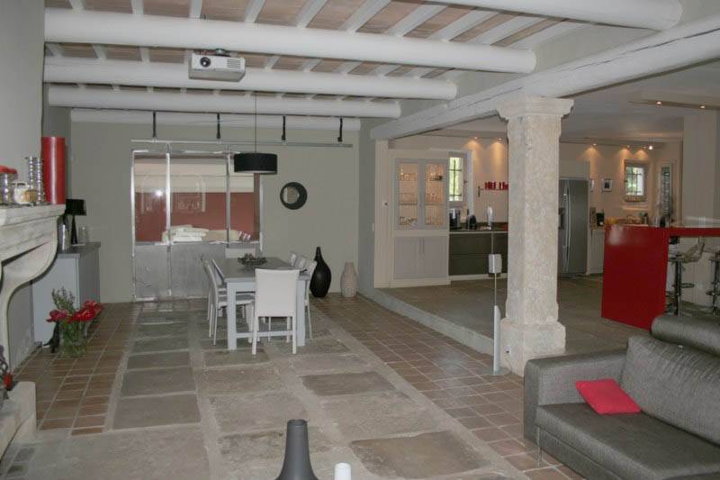 p>Drôme Provençale, alliant l'ancien et le moderne, superbe réalisation de 2005, en partie "habillée" de pierres. Sh env. 200m² avec trés bel espace de vie d'env. 90m², 3 chambres, salle d'eau, SDB,