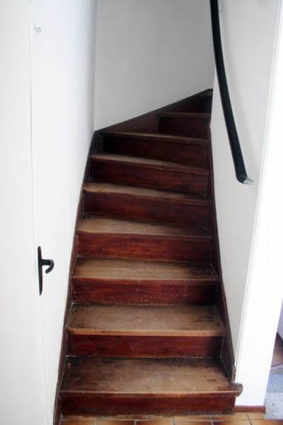 Un joli escalier en bois mène à l'étage: 3 chambres avec plancher au sol, placards, salle de bains, toilettes.